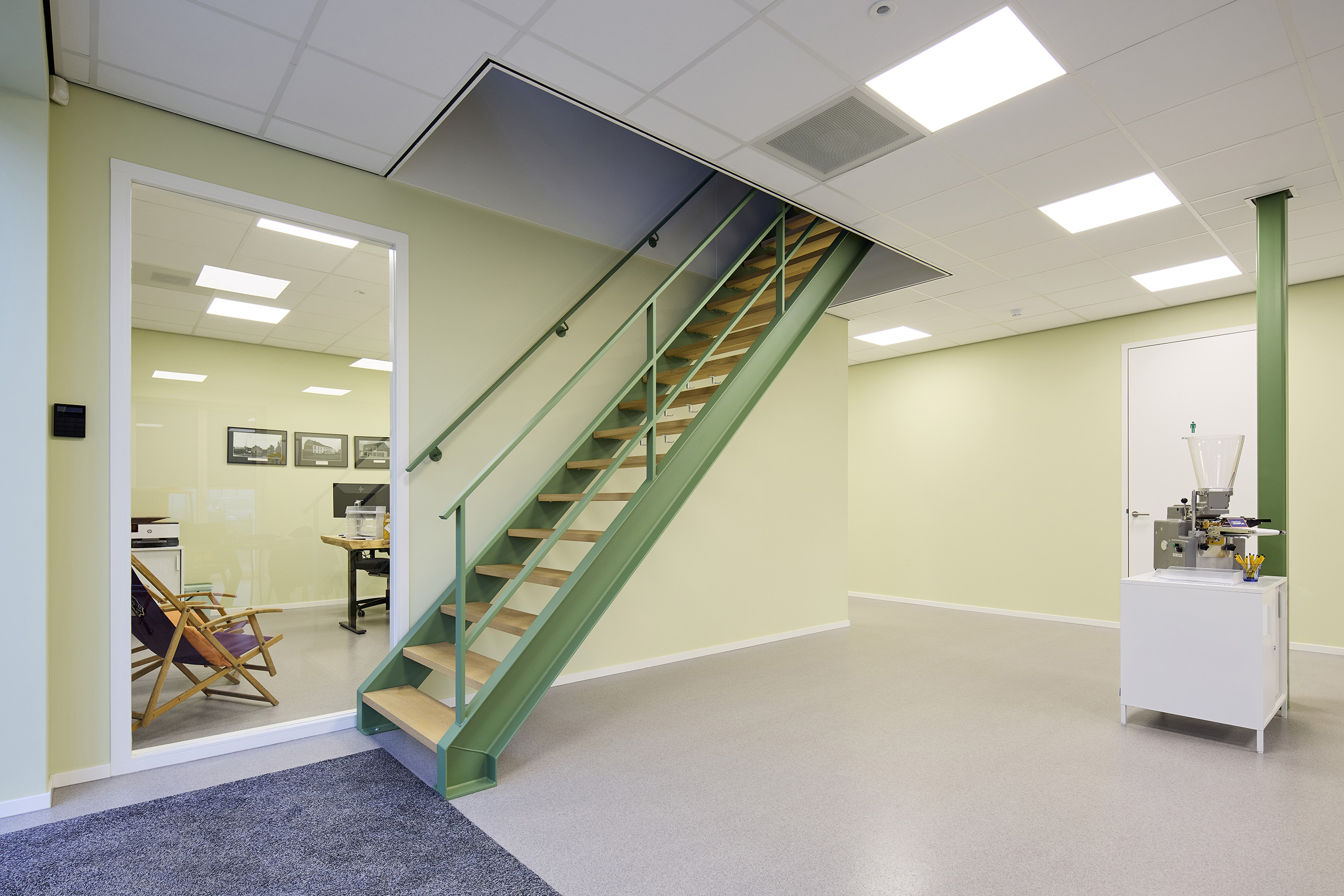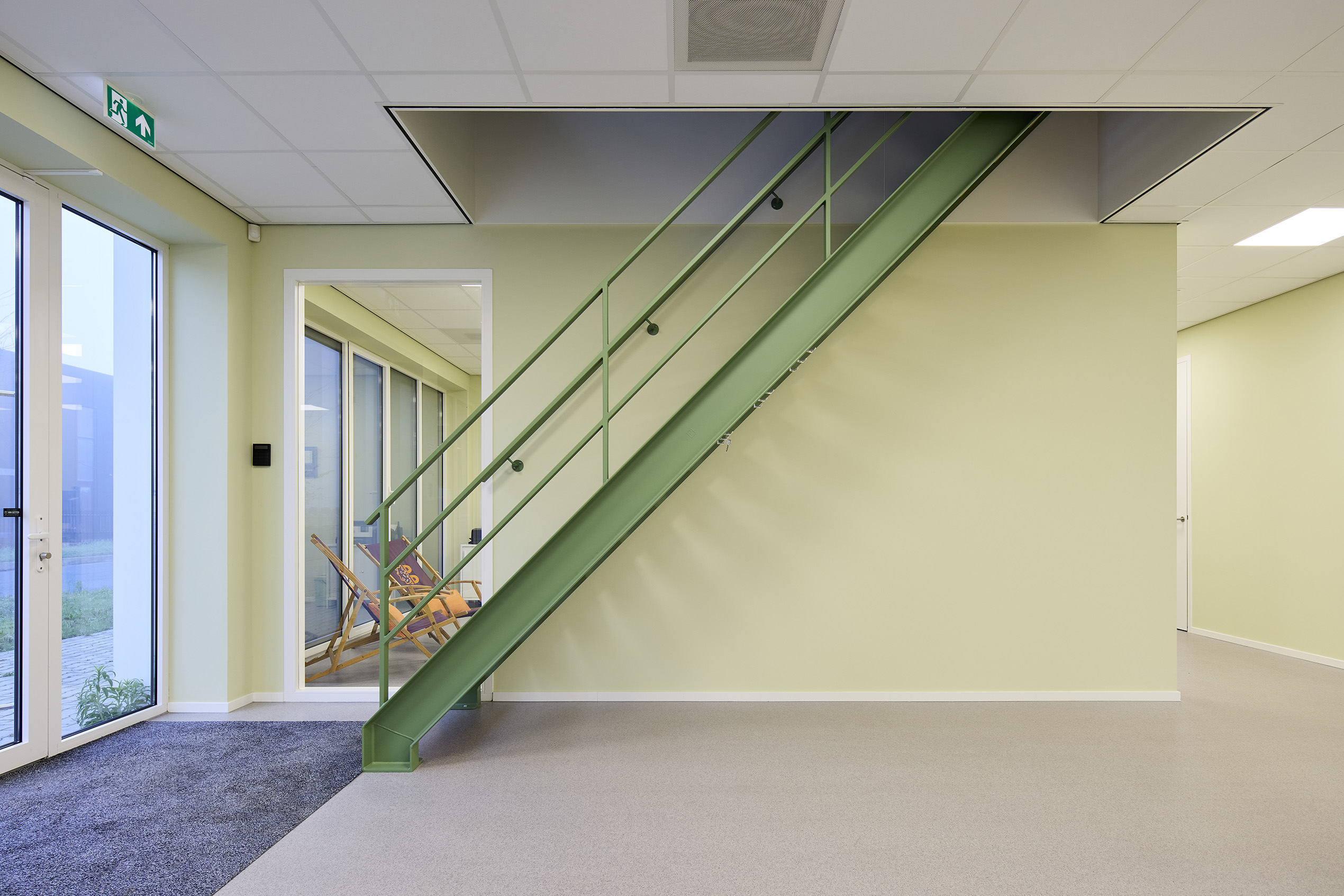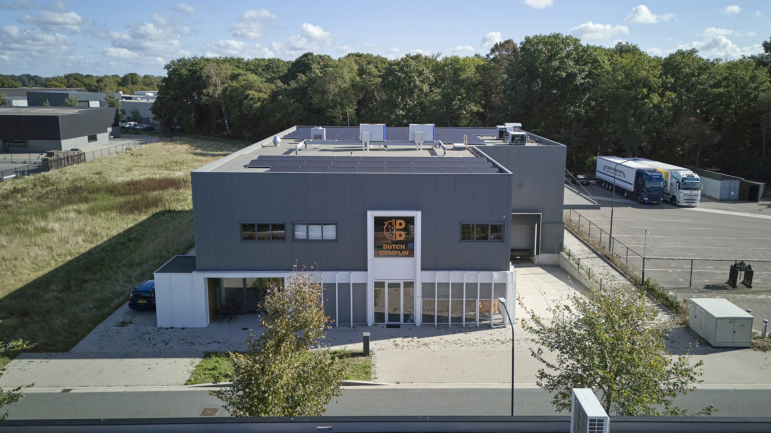 Onderdelen: Staalconstructie, betonwanden, kanaalplaatvloer, dakplaten en wandbekleding inclusief aluminium composiet, trap en balustrade.